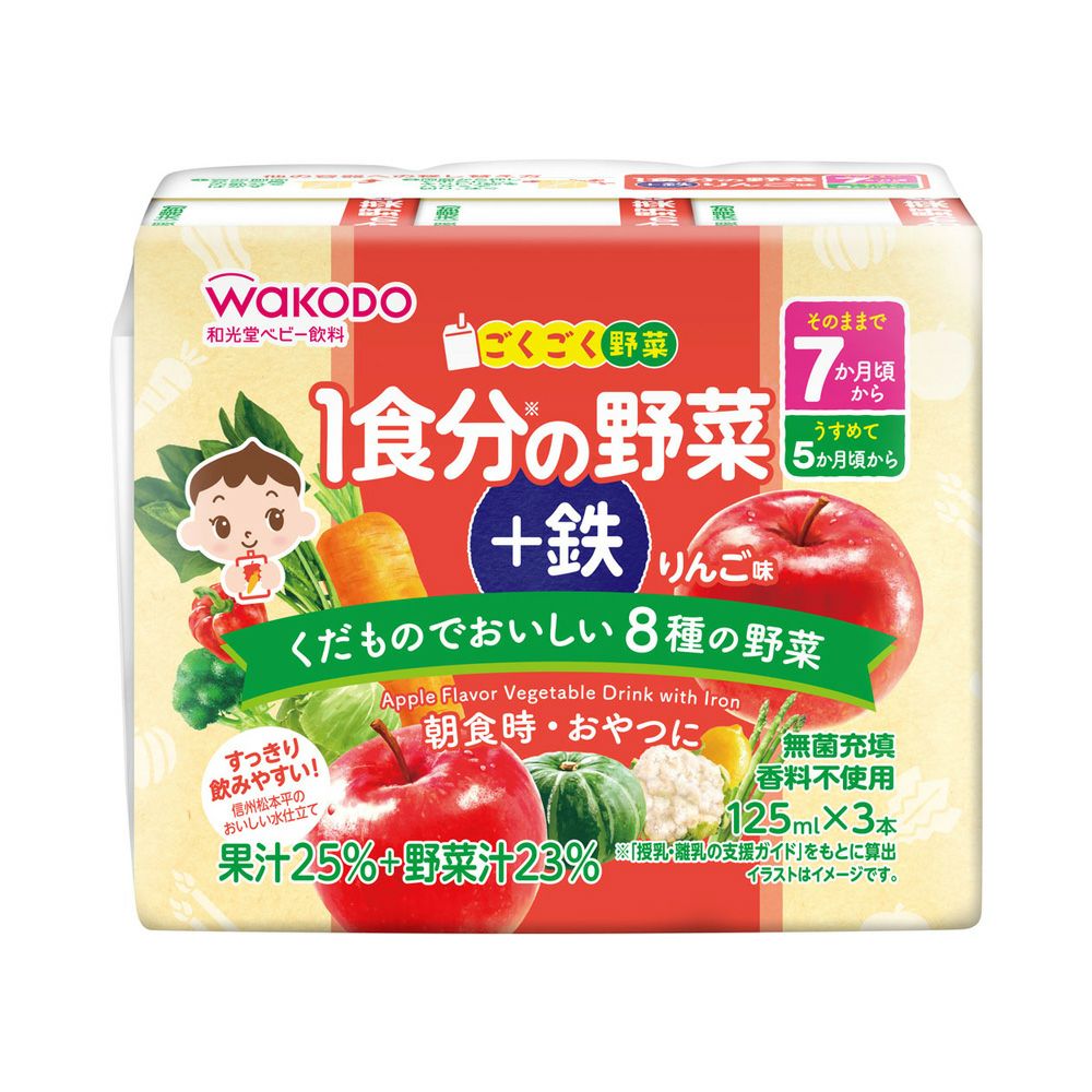 ごくごく野菜1食分の野菜+鉄りんご味 125ml×3 和光堂